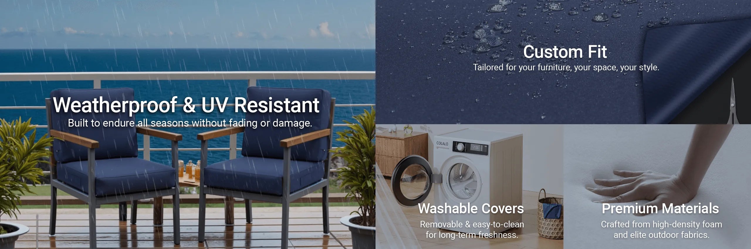 Alyce ErlenbuschQuality“These are great outdoor cushions. Made very well. I love that they have a 2nd layer of security on the inside to keep the cushions from getting wet. I already washed them once and they came out gorgeous. Very high quality and would highly recommend.”